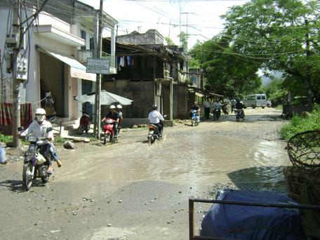 | Do thi công tạm nên đoạn đường xuống cấp nặng |