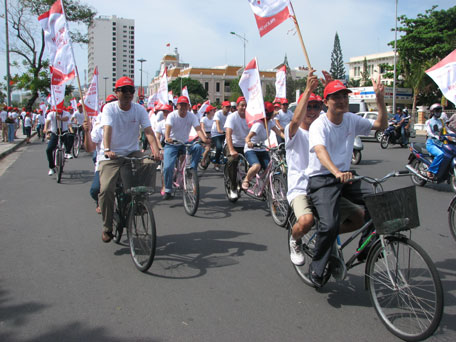 | Hơn 500 nhân viên Prudential diễu hành dọc các đường phố chính TP. Nha Trang để tuyên truyền bảo vệ môi trường. |