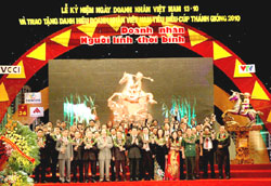 Tối 9-10, tại Hà Nội, đã diễn ra lễ trao Cup Thánh Gióng cho 100 doanh nhân tiêu biểu năm 2010 do Phòng Thương mại và Công nghiệp Việt Nam (VCCI) tổ chức. Dự lễ có ông Tô Huy Rứa - Ủy viên Bộ Chính trị, Bí thư Trung ương Đảng, Trưởng Ban Tuyên giáo Trung ương, Chủ tịch Hội đồng Lý luận Trung ương; lãnh đạo của nhiều bộ, ngành và địa phương.