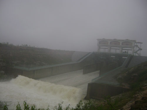 | Hồ Suối Dầu (Cam Lâm) xả lũ. (Ảnh: Q.V) |