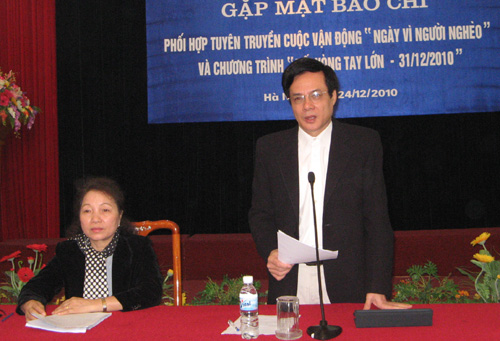 Sáng 24-12, tại Hà Nội, Ủy ban Trung ương họp báo thông báo về kết quả cuộc vận động “Ngày vì người nghèo” năm 2010 và chương trình “Nối vòng tay lớn” 31-12-2010.