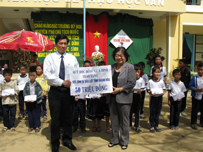 Hoạt động thiết thực này là một trong những điểm đến của chương trình trao quà cho HS vùng bão lũ miền Trung do Báo Thiếu niên Tiền Phong và Quỹ Học bổng Vừ A Dính tổ chức. Được biết, từ ngày 6 đến 8-1, bà Trương Mỹ Hoa dẫn đầu đoàn sẽ đến 6 tỉnh miền Trung (Ninh Thuận, Khánh Hòa, Phú Yên, Bình Định, Quảng Ngãi, Quảng Nam) để trao mỗi tỉnh 250 suất quà, trị giá 50 triệu đồng. Tại mỗi tỉnh, đồng chí Trương Mỹ Hoa sẽ trao đại diện 30 phần quà, số còn lại sẽ trao cho Sở Giáo dục - Đào tạo phân bổ.