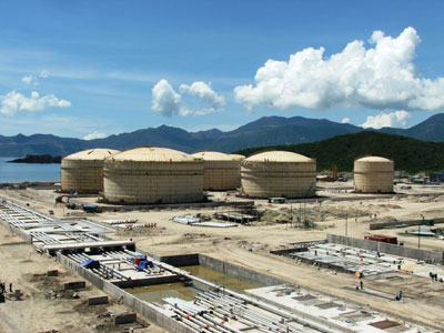| Kho Xăng dầu ngoại quan Vân Phong đang được đẩy nhanh tiến độ xây dựng. |