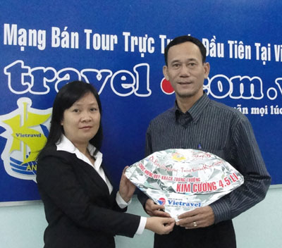 Ngày 27-1-2011, Chi nhánh Vietravel tại Nha Trang tổ chức trao viên kim cương 4,5 ly trị giá 17 triệu đồng cho ông Bảo Hậu (68/10A Lê Hồng Phong, Nha Trang) - khách hàng đã may mắn trúng thưởng trong chương trình “Du Xuân bốn phương - Trúng thưởng kim cương” khi mua tour Malaysia - Singapore (6 ngày) khởi hành vào mùng 3 Tết.