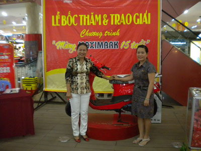 Trung tâm Thương mại Maximark Nha Trang vừa tổ chức bốc thăm và trao giải cho khách hàng trúng thưởng trong chương trình khuyến mãi “ Mừng Maximark 15 tuổi”. Khách hàng may mắn nhất được trúng giải đặc biệt 1 chiếc xe Attila Elizabeth trị giá 35 triệu đồng là chị Nguyễn Thị Hiệp ở 187 Nguyễn Bỉnh Khiêm, Nha Trang. Giải nhất là một chiếc tivi LCD 32 inches thuộc về chị Nguyễn Thị Mỹ Dung ở Cam Hải Tây, Cam Lâm. Ngoài ra, còn có 5 giải nhì, 10 giải ba và 40 giải khuyến khích cũng đã được trao cho khách hàng trúng thưởng.