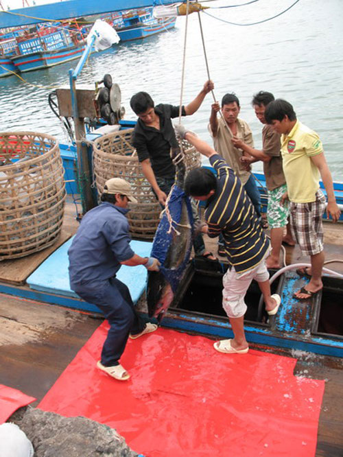 | Đưa cá ngừ lên bờ. |