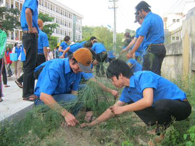 | Đoàn viên, thanh niên Trường Cao đẳng Sư phạm Trung ương Nha Trang tham gia trồng cây làm đẹp khuôn viên trường. |