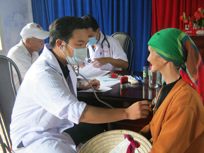 | Đoàn y, bác sĩ thuộc Câu lạc bộ Tình nguyện trẻ (TP. Hồ Chí Minh) khám bệnh, phát thuốc miễn phí cho người dân xã Suối Hiệp (Diên Khánh). |