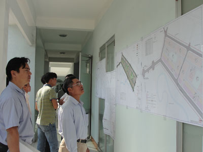 | Đại biểu xem bản đồ Quy hoạch tại hội nghị |