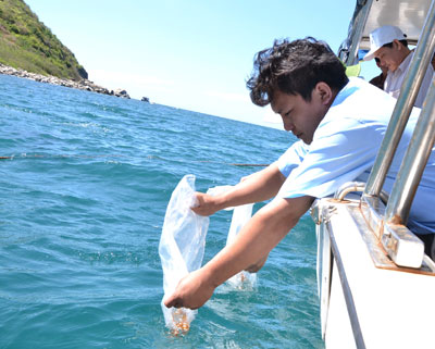 | Thả cá nemo tại vùng lõi biển Hòn Mun. |