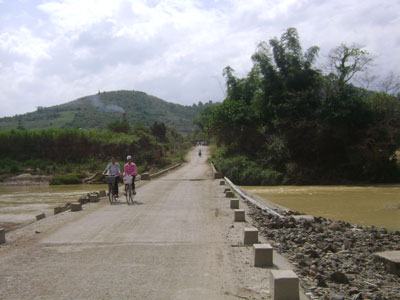 | Cầu cũ của Diên Đồng thấp, dễ bị cô lập trong mùa mưa bão. |