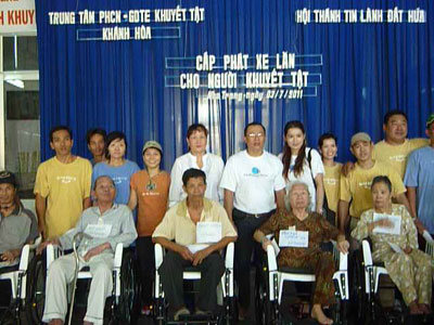 Sáng 3-7, tại TP. Nha Trang, Trung tâm Phục hồi chức năng - Giáo dục trẻ em khuyết tật tỉnh Khánh Hòa phối hợp với Hội Thánh Tin lành Đất Hứa (TP. Hồ Chí Minh) trao 150 chiếc xe lăn (mỗi xe trị giá 2 triệu đồng) cho người khuyết tật trên địa bàn tỉnh. Trong đó: Diên Khánh 41 chiếc, Ninh Hòa 36 chiếc, Vạn Ninh 17 chiếc, Nha Trang 50 chiếc… Đây là một trong những hoạt động xã hội từ thiện nhằm giúp người khuyết tật có điều kiện hòa nhập với cộng đồng.