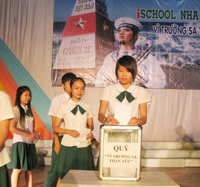 | Học sinh Trường Trung học Phổ thông Ischool Nha Trang đóng góp “Quỹ vì Trường Sa thân yêu”. |
