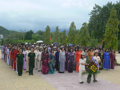 | Đại biểu phụ nữ tỉnh Khánh Hòa dâng hương, dâng hoa tại Nghĩa trang Liệt sĩ Hòn Dung. |