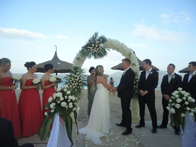 Đám cưới của 2 du khách nước ngoài này đã diễn ra gọn nhẹ nhưng đầy ý nghĩa trong khung cảnh yên bình của bãi biển Nha Trang. Trong tiếng nhạc du dương, đôi uyên ương đã nói những lời ước nguyện, trao nhẫn cưới và uống ly rượu giao bôi… Ngoài 30 khách mời, còn có người dân địa phương, khách du lịch và nhân viên Khách sạn Novotel chứng kiến lễ cưới này.