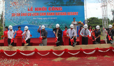 | Các đại biểu làm lễ động thổ khởi công xây dựng KDL Cam Ranh Bayana Resort. |