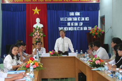 | Ông Lê Xuân Thân - Phó Chủ tịch UBND tỉnh Khánh Hòa làm việc với lãnh đạo xã Cam Lập (TP. Cam Ranh). |
