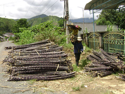 | Thu hoạch mía tím tại Khánh Sơn. |