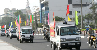 | Các lực lượng tham gia diễu hành tuyên truyền Cuộc vận động “Văn hóa giao thông với bình yên sông nước” trên các trục đường chính của TP. Nha Trang. |