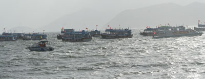 | Các lực lượng tham gia diễu hành tuyên truyền Cuộc vận động “Văn hóa giao thông với bình yên sông nước” trên biển. |