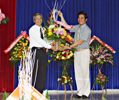 | Ông Lê Thanh Quang - Ủy viên Trung ương Đảng, Bí thư Tỉnh ủy, Chủ tịch HĐND tỉnh Khánh Hòa tặng lẵng hoa chúc mừng Ngày Nhà giáo Việt Nam cho ngành Giáo dục Khánh Hòa. |