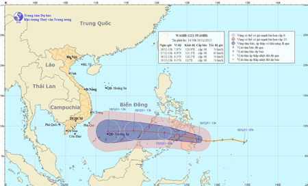Dự báo trong 24 giờ tới, bão di chuyển theo hướng giữa tây và tây tây bắc, mỗi giờ đi được khoảng 20-25km. Đến 13h ngày 17.12, vị trí tâm bão ở vào khoảng 8,9 độ Vĩ Bắc; 121,3 độ Kinh Đông, trên vùng biển Xu Lu (Philippines). Sức gió mạnh nhất vùng gần tâm bão mạnh cấp 8 (tức là từ 62-74 km/giờ), giật cấp 9-10.