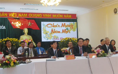 Chiều 20-1, tại Hội trường Tỉnh ủy Khánh Hòa, Thường trực Tỉnh ủy và lãnh đạo HĐND, UBND, Ủy ban Mặt trận Tổ quốc Việt Nam tỉnh Khánh Hòa cùng lãnh đạo các ban, ngành của tỉnh tổ chức chúc Tết cán bộ, chiến sĩ và nhân dân huyện đảo Trường Sa qua cầu truyền hình trực tuyến của Bộ Tư lệnh Thông tin. Đến dự có các ông : Lê Thanh Quang - Ủy viên Trung ương Đảng, Bí thư Tỉnh ủy, Chủ tịch HĐND tỉnh; Nguyễn Tấn Tuân - Phó Bí thư Thường trực Tỉnh ủy, Trưởng Đoàn đại biểu Quốc hội tỉnh; Nguyễn Chiến Thắng - Phó Bí thư Tỉnh ủy, Chủ tịch UBND tỉnh.