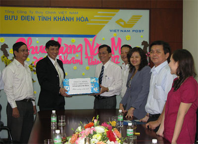 | Ông Lê Đức Vinh, Ủy viên Ban Thường vụ Tỉnh ủy, Phó Chủ tịch UBND tỉnh Khánh Hòa chúc Tết Bưu điện tỉnh Khánh Hòa. |