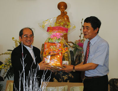 | Ông Lê Thanh Quang, Ủy viên Trung ương Đảng, Bí thư Tỉnh ủy, Chủ tịch HĐND tỉnh Khánh Hòa đến chúc Tết Tòa Giám mục Nha Trang. |
