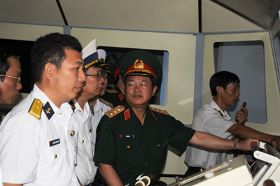 | Thượng tướng Đỗ Bá Tỵ tham quan Trung tâm Huấn luyện mô phỏng đào tạo chỉ huy tàu 12418 (Học viện Hải quân). |