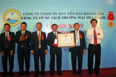 Ngày 4-7, Công ty Cổ phần Du lịch Thương mại Nha Trang (đơn vị thành viên của Công ty TNHH Nhà nước một thành viên Yến sào Khánh Hòa) tổ chức lễ đón nhận Huân chương Lao động hạng Ba do Chủ tịch nước trao tặng.