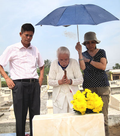 | Bà Tỵ đã tìm thấy mộ con trai - liệt sĩ Bùi Khánh Phước |