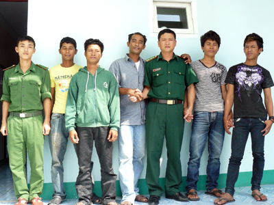 Bộ đội Biên phòng tỉnh Khánh Hòa động viên các ngư dân Philippines vừa được tàu cá Việt Nam cứu sống. |