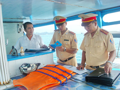 Thượng tá, Thủy đội trưởng Lê Hồng Tiến cho biết, bên cạnh tuyên truyền, phổ biến, giáo dục pháp luật, trong năm 2012, Phòng PC68 Công an tỉnh đã huy động 2.588 lượt CB-CS, triển khai 702 ca tuần tra, kiểm soát tuyến biển đảo trên vịnh biển Nha Trang, phát hiện 219 trường hợp vi phạm, xử phạt hành chính hơn 120 triệu đồng, thu giữ 20 bằng thuyền trưởng, máy trưởng có dấu hiệu giả mạo, chuyển giao cho cơ quan CSĐT Công an tỉnh điều tra, xử lý theo thẩm quyền. Thượng tá Lê Hồng Tiến cho biết: “Một tàu thuyền du lịch bắt buộc phải có đầy đủ thủ tục đăng ký, đăng kiểm, bằng thuyền trưởng, giấy chứng nhận an toàn phòng cháy chữa cháy, bảo hiểm trách nhiệm dân sự, hành khách đi tàu phải mặc áo phao, trên tàu phải có bình chữa cháy… Ngoài ra, có những trường hợp, chúng tôi kiểm tra luôn về tình trạng an toàn kỹ thuật của tàu”.