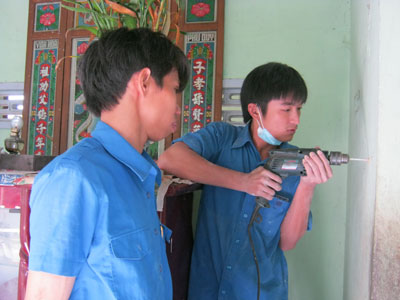 | Đoàn viên Khatoco giúp mẹ Võ Thị Hộ sửa chữa, sơn mới nhà. |