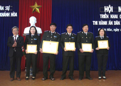 Nhân dịp này, Bộ Tư pháp tặng bằng khen tập thể lao động xuất sắc cho Cục THADS tỉnh; tặng bằng khen cho các cá nhân, tập thể có thành tích xuất sắc trong năm 2012.