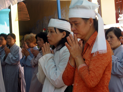 Thân nhân người bị nạn và đông đảo Phật tử đến dự lễ cầu siêu cho các nạn nhân. |