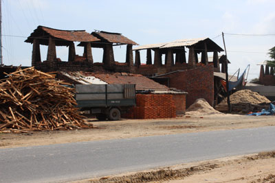 | Nhiều lò gạch thủ công ở xã Ninh Xuân vẫn tiếp tục hoạt động. |