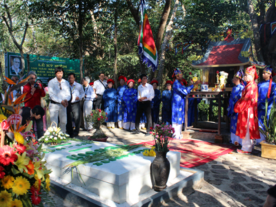 Các đại biểu dâng hương, dâng hoa tại mộ Yersin ở Suối Dầu. Ảnh: Thanh Thảo |