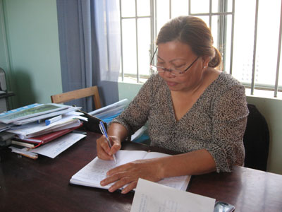 Chị Gõ tham gia công tác Hội từ năm 1997. Với năng lực của bản thân, sau một thời gian làm việc, chị đã đưa Chi hội thôn Đắc Lộc từ một đơn vị có phong trào Hội kém nhất xã trở thành đơn vị dẫn đầu xã 3 năm liền. Thấy chị có năng lực, Hội đã cử chị đi học lớp Trung cấp phụ vận. Sau khi kết thúc khóa học, chị được bầu làm Chủ tịch Hội Phụ nữ xã từ năm 2001. Chị Gõ kể, lúc mới làm Chủ tịch Hội, phong trào phụ nữ xã Vĩnh Phương thuộc nhóm yếu nhất TP. Nha Trang. Số hội viên tham gia sinh hoạt Hội rất ít, 24 tổ ở cơ sở gần như không hoạt động; số hộ phụ nữ nghèo chiếm tỷ lệ khá cao với 400 hộ; hiểu biết pháp luật của chị em còn hạn chế. “Khi được giao công việc, tôi rất lo vì bản thân còn non yếu kinh nghiệm”, chị Gõ tâm sự. Tuy nhiên, với lòng say mê công việc, chị đã xuống tận cơ sở để kiện toàn lại hệ thống cán bộ 24 tổ; phối hợp với cán bộ các tổ để vận động phụ nữ tham gia công tác Hội; tổ chức các buổi tuyên truyền kiến thức pháp luật cho hội viên; tổ chức hội nghị người nghèo để tìm hiểu tâm tư nguyện vọng của phụ nữ nghèo, tạo điều kiện để hộ nghèo vay vốn phát triển kinh tế; giúp đỡ phụ nữ gặp hoàn cảnh đặc biệt khó khăn… Thấy được sự quan tâm của Hội, số hội viên tham gia tổ chức Hội ngày một đông. Đặc biệt, số hộ phụ nữ nghèo được Hội tạo điều kiện giúp đỡ ngày một nhiều. Hàng năm, tỷ lệ phụ nữ thoát nghèo đều vượt chỉ tiêu đề ra. Riêng năm 2012, có 27 hội viên thoát nghèo, đạt 32%. Đến nay, số phụ nữ nghèo toàn xã giảm xuống chỉ còn 95 chị, góp phần đáng kể vào công tác xóa nghèo tại địa phương...