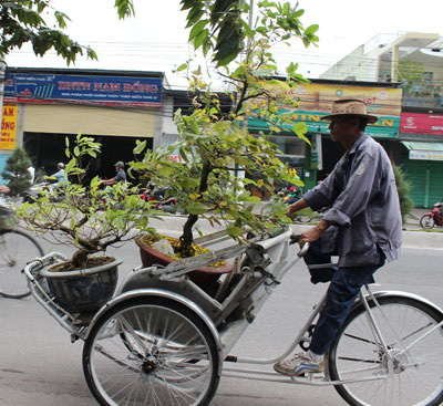 “Ăn theo” dịch vụ chăm sóc mai tại các nhà vườn, thời điểm này, dịch vụ chuyên chở cũng khá đắt hàng. Ông Võ Văn Quế (ở phường Phước Long), người làm nghề đạp xích lô cho biết, cứ vào dịp sau Tết, các chủ vườn lại thuê khoảng 3 - 4 xe ba gác, xích lô túc trực để chở hoa từ nhà của khách hàng đến nhà vườn. “Tùy cây to hay nhỏ và đi xa hay gần, mỗi ngày, tôi cũng kiếm được khoảng 200 ngàn đồng”, ông Quế chia sẻ.