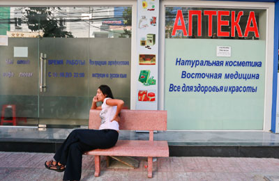 | Một cửa hàng bán thực phẩm chức năng ghi bằng tiếng Nga trên đường Nguyễn Thiện Thuật, TP. Nha Trang. |