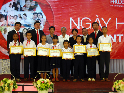 Dịp này, Công ty phối hợp với Tỉnh đoàn Khánh Hòa và Thành đoàn Cam Ranh trao tặng học bổng Prudential “Vượt khó – Học tốt” cho 10 em học sinh giỏi có hoàn cảnh khó khăn thuộc các trường trên địa bàn thành phố (trị giá 1 triệu đồng/suất). Học bổng do Quỹ Prudence thuộc Công ty tài trợ.