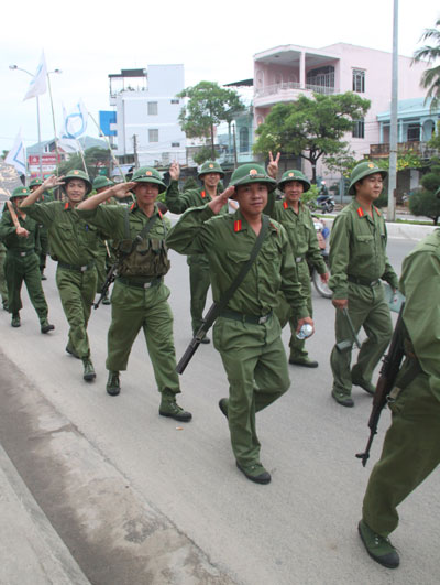Ngày 2-6, khi cả thành phố biển đang chờ đón Festival biển Nha Trang 2013, chúng tôi có mặt tại Trường Quân sự tỉnh Khánh Hòa (70 Phạm Tu, TP. Nha Trang) theo học lớp Sĩ quan dự bị động viên. Bước vào trường, đập ngay vào mắt chúng tôi là câu khẩu hiệu: “Kỷ luật là sức mạnh quân đội”, “Rèn cán như rèn binh, rèn mình như rèn chiến sĩ”. Trong khi các học viên theo học lớp Sĩ quan bộ binh tỏ ra khá thoải mái vì đã từng có thời gian trong quân ngũ, thì học viên lớp Sĩ quan chính trị (đều là cán bộ, công chức Nhà nước) lại khá hồi hộp, lo lắng.