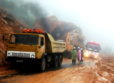 | Vào mùa mưa lũ hàng năm, đường Nha Trang - Lâm Đồng thường xuyên bị sạt lở đất, đá gây cản trở giao thông - Ảnh minh họa. |