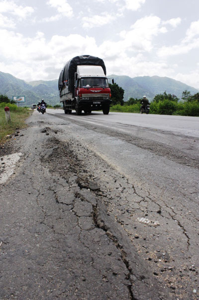 Theo ghi nhận của phóng viên, trên địa bàn tỉnh hiện có nhiều tuyến đường đã xuống cấp, hư hỏng. Tại Quốc lộ 1A đoạn qua đèo Rọ Tượng (xã Ninh Ích, thị xã Ninh Hòa), ở đây chỉ khoảng 2km đường nhưng bề mặt đường nhựa luôn tồn tại hàng trăm u lồi lõm (sống trâu) dài hàng trăm mét, các xe qua đây chỉ có thể đi với tốc độ rất chậm và thường xảy ra tai nạn. Tại cửa ngõ phía Bắc TP. Nha Trang, đoạn đường dẫn từ Quốc lộ 1A vào trung tâm thành phố chỉ dài khoảng 2,8km được khởi công từ tháng 9-2009 nhưng đến nay vẫn còn dang dở. Đoạn đường này có tổng mức đầu tư 94 tỷ đồng do Liên doanh nhà thầu Công ty Cổ phần 504 và Công ty Cổ phần Xây dựng công trình 505 xây dựng với 4 làn xe. Nhưng hiện nay đoạn đường này chỉ đi được 2 làn. Chiều 1-11, có mặt tại đây, chúng tôi chứng kiến có khoảng 500m đường bị cắt lớp nhựa một bên đường, bỏ lại 1 lớp cát.