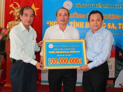 Tại buổi lễ, ông Lê Hữu Hoàng, Tổng Giám đốc Công ty TNHH Nhà nước Một thành viên Yến Sào Khánh Hòa đã trao tượng trưng 100 triệu đồng cho đại diện Liên đoàn lao động tỉnh. Cũng tại buổi lễ, tập thể cán bộ, nhân viên của công ty đã phát động đóng góp ủng hộ quỹ “Nghĩa tình Hoàng Sa, Trường Sa” và nhắn tin HSTS gửi 1407 (mỗi tin nhắn ủng hộ 14.000 đồng).