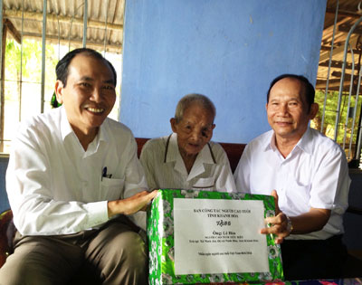 Ngày 4 và 5-6, Sở Lao động - Thương binh và Xã hội phối hợp với ban đại diện Hội Người cao tuổi tỉnh tổ chức đoàn đến thăm, chúc thọ và trao quà của Chủ tịch UBND tỉnh cho 8 cụ tròn 90 tuổi tiêu biểu trên địa bàn thị xã Ninh Hòa và TP. Nha Trang.