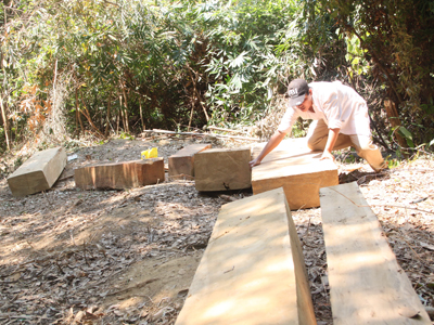 Phóng viên Báo Khánh Hòa tác nghiệp tại hiện trường ở bài điều tra “Rút ruột rừng Khánh Thượng”. |
