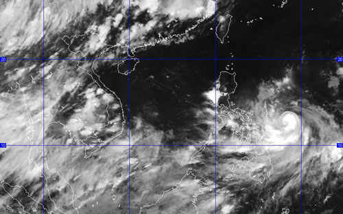 | Vị trí cơn bão chụp từ vệ tinh lúc 5h ngày 15-7 (Ảnh: TTDBKTTV) |
